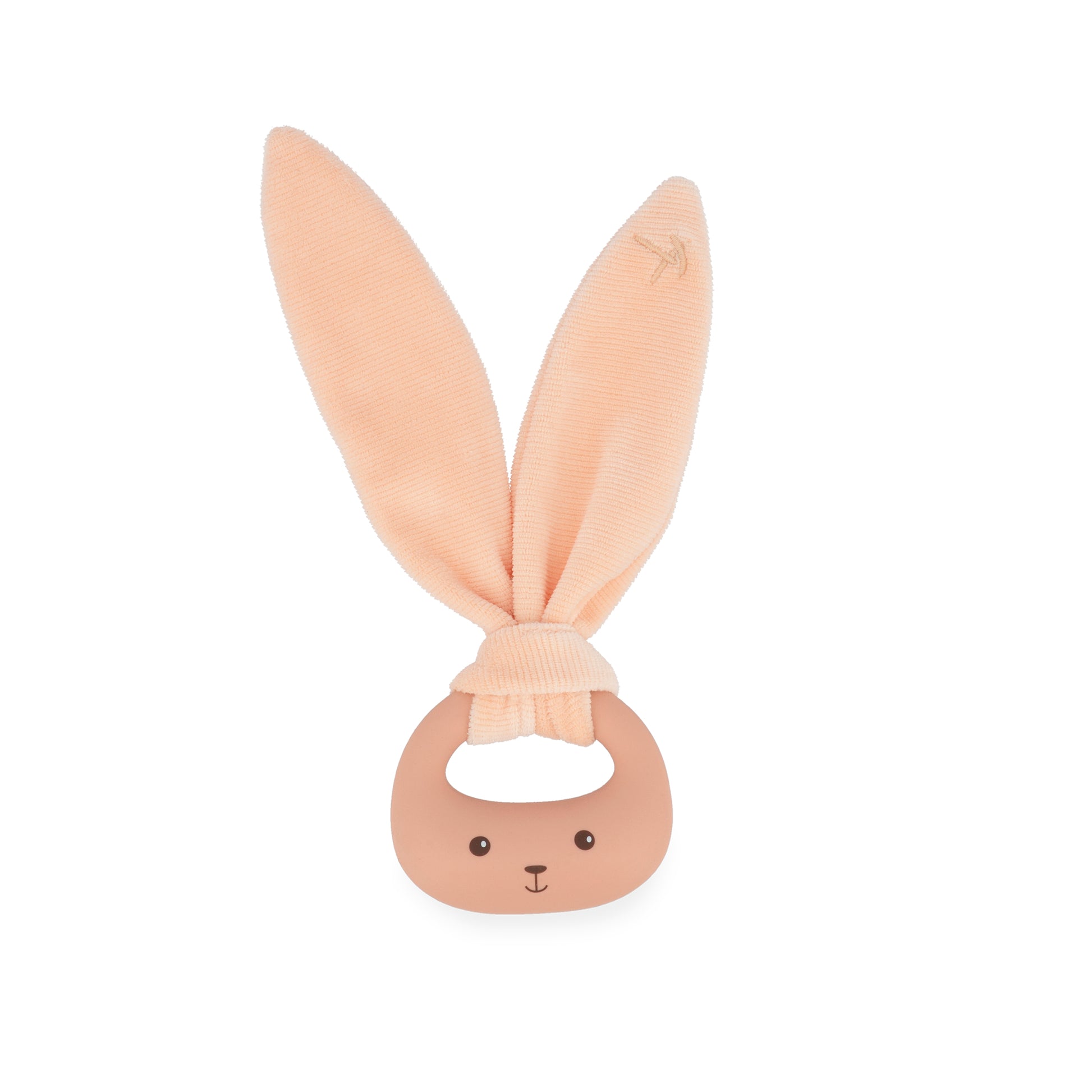 Este juego de 3 elementos esenciales es la caja de regalo perfecta para recién nacidos. Está compuesto por un peluche doudou, un anillo de dentición y unas pequeñas zapatillas de color melocotón. El peluche doudou es un alegre conejito, el primer compañero del bebé que le acompañará a lo largo de sus días y sus noches. Con dos materiales, pana y tejido ligero de viscosa, se adapta perfectamente al confort del bebé. El peluche doudou de conejito de 30 cm destaca por sus largas orejas, que son totalmente irresistibles. Gracias a ellas, se puede enganchar en cualquier lugar para guardarlo y no perderlo nunca. Permiten además envolver al bebé en el más tierno de los abrazos, y lo pueden agarrar fácilmente las pequeñas manos del bebé. El anillo de dentición de silicona es ideal para aliviar el dolor de los dientes que le están saliendo al bebé. Su forma redondeada y blanda le permite adaptarse a las pequeñas bocas de los bebés gracias a su tamaño de 7 cm de alto y 8 cm de ancho. Diseñado para el bienestar del bebé, está compuesto por 2 texturas. Totalmente liso por delante y con bultitos en la parte posterior para favorecer la salida de los primeros dientes y masajear las encías doloridas. El bebé puede agarrar fácilmente las grandes y suavísimas orejas que también se pueden enganchar en cualquier lugar a donde vaya el bebé. Además, las orejas son desmontables para facilitar el lavado. Las zapatillas se pueden usar de 0 a 6 meses y se combinan con el peluche doudou y el anillo de dentición para que el bebé no pase frío. Con dos materiales, pana y ante, para que sean muy suaves e irresistibles para los pies del bebé, y con orejitas de conejo. Este juego se presenta en una bonita caja personalizable con un mensaje en el espacio disponible bajo la tapa. Lavar a máquina a 30° el peluche doudou y el anillo de dentición. Lavar a mano las zapatillas. Disponible en varios colores.