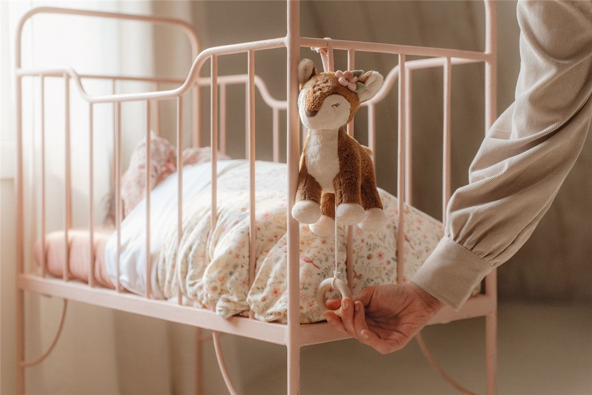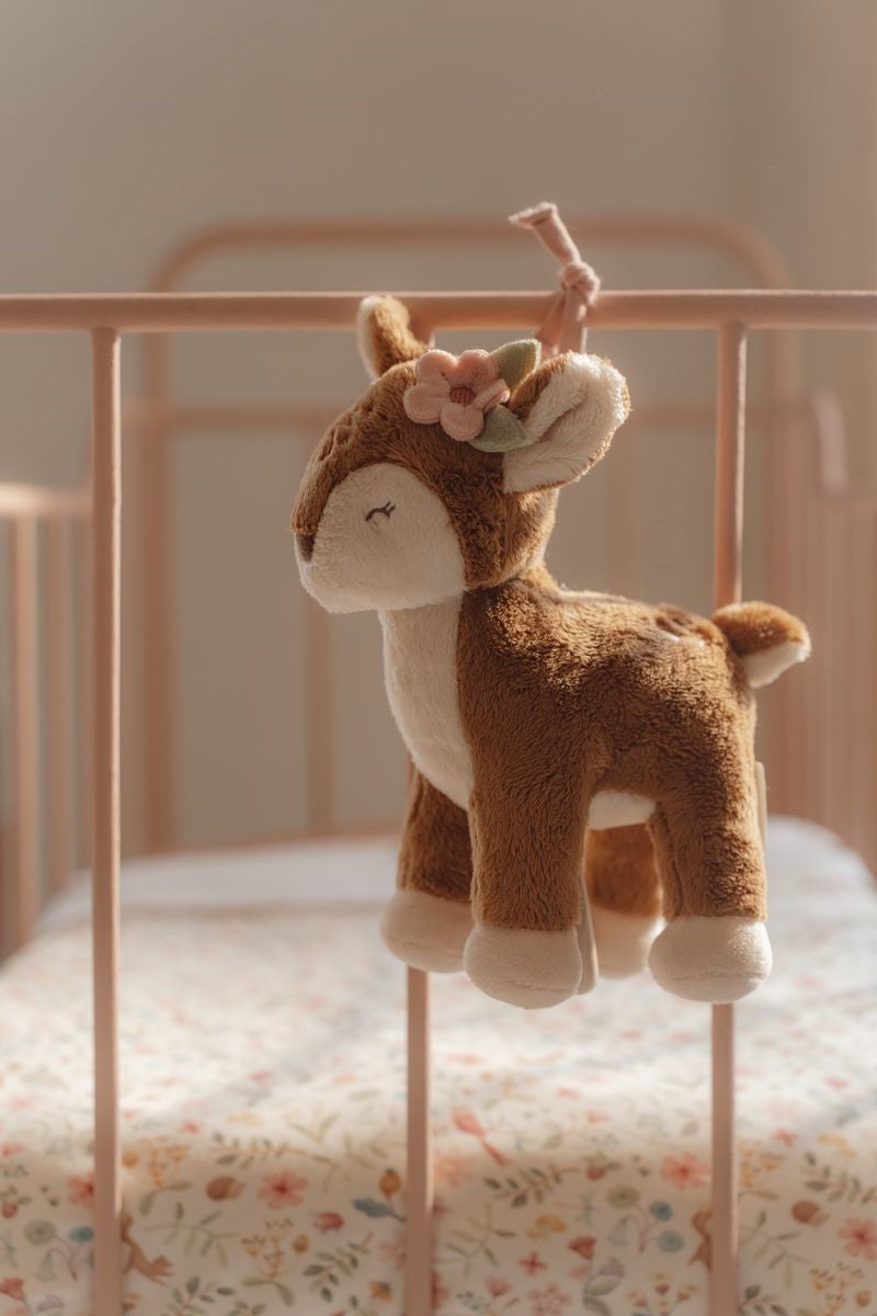 ¡Dulces sueños! Este ciervo durmiente te guiará a un mundo de ensueño lleno de maravillas e imaginación. Mejora las rutinas de la hora de dormir con las encantadoras melodías de esta divertida caja de música. Baja el aro de madera y la relajante canción de cuna comenzará a sonar mientras tu pequeño se queda dormido. Un hermoso regalo y una encantadora adición a la decoración de la habitación del bebé.