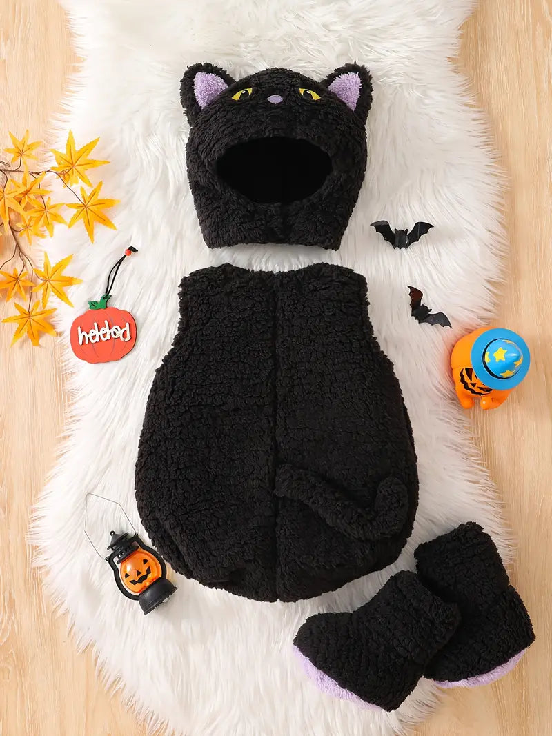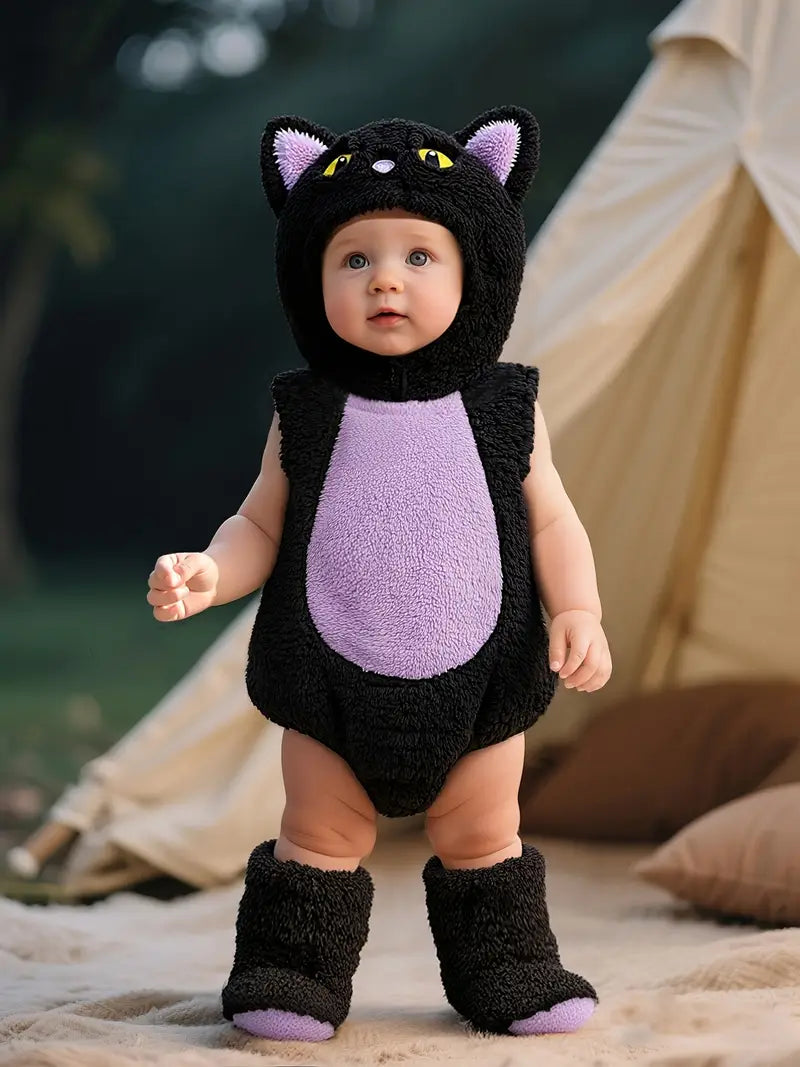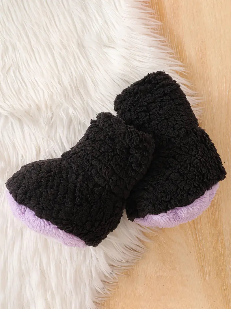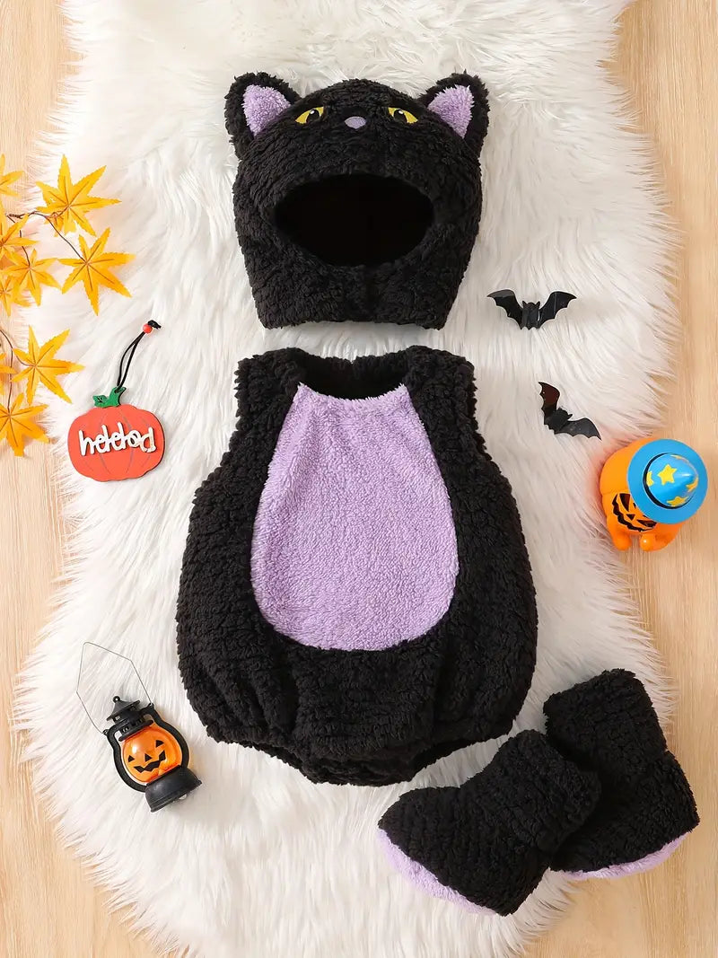 Conjunto de Peluche para Bebé de Tres Piezas: Gorro + Top sin Mangas + Cubre Pies en Contraste Morado