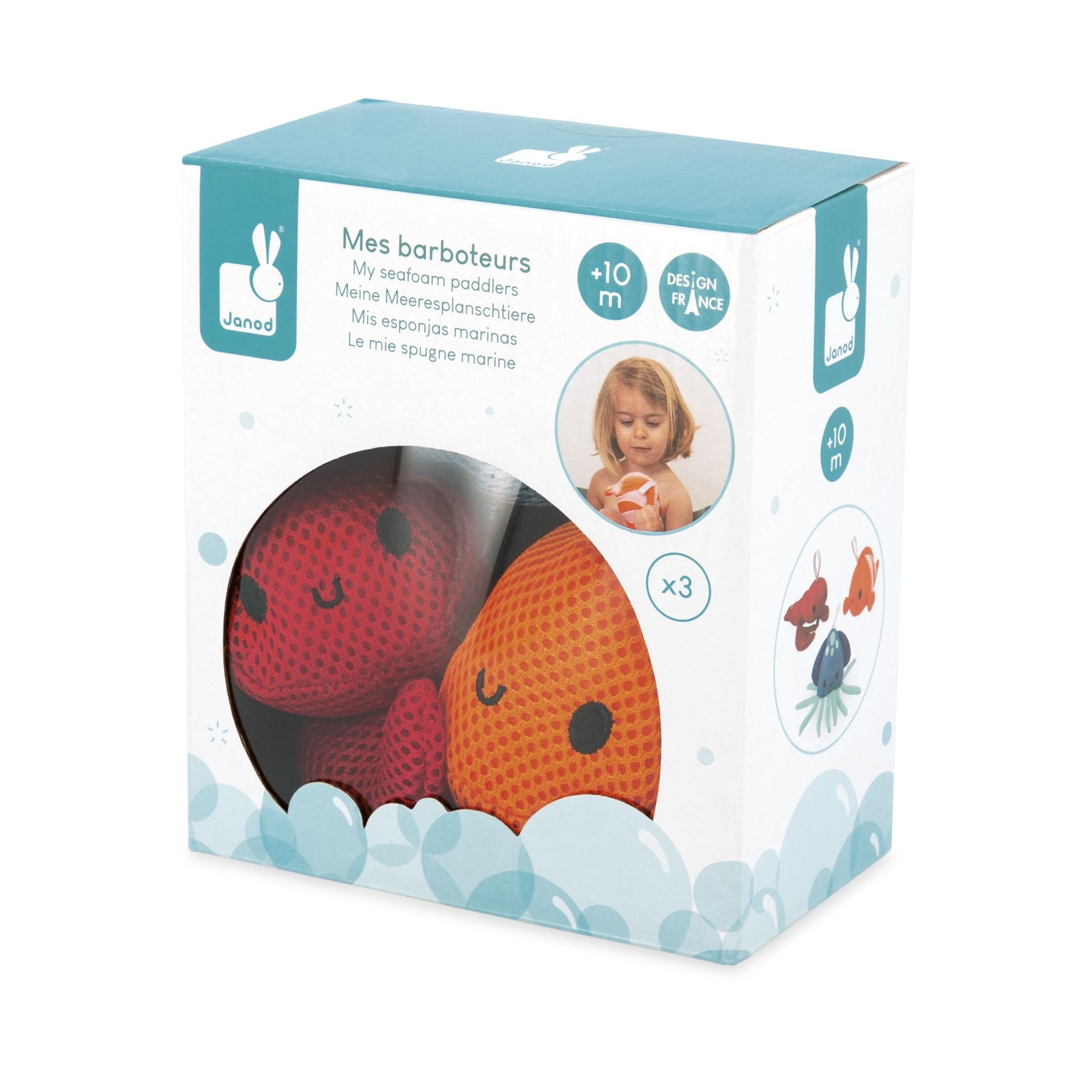 ¡Consiga que su hijo sea más autónomo con estas bonitas esponjas de baño! Este set está compuesto por 3 animales marinos: una langosta, un pez payaso y un calamar. Solo hay que mojarlas y añadir un poco de jabón para hacer espuma. Adaptadas a las manos de los más pequeños, las esponjas de baño le permitirán enseñar a su hijo a lavarse él solo mientras se divierte. Juguete para el baño para niños a partir de 10 meses.