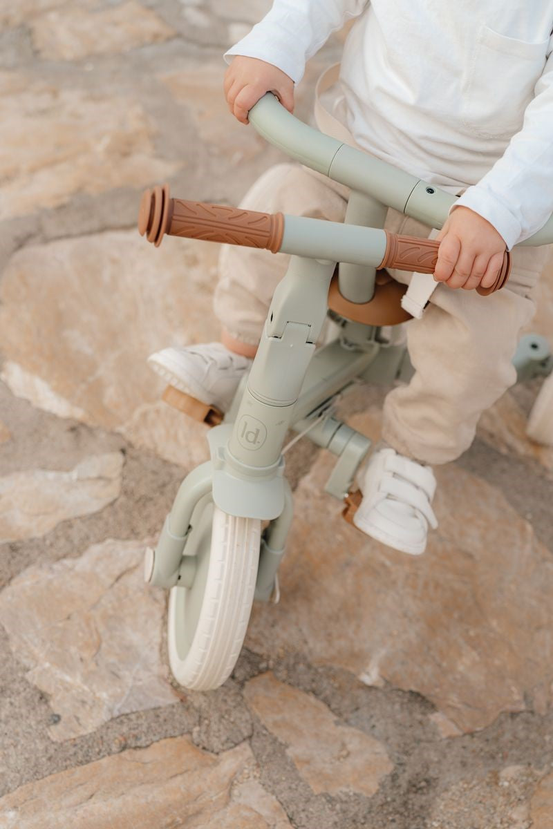 La bicicleta de equilibrio es una preparación ideal para descubrir el ciclismo. Cuando el pequeño aún es demasiado pequeño para montar en bicicleta o correr, mamá o papá pueden empujarlo hacia adelante usando la barra de empuje. El niño está completamente seguro en el cinturón de seguridad y el anillo de seguridad. La barra de empuje y el anillo de seguridad se pueden quitar fácilmente. Este modelo es fácil de convertir de un triciclo a una bicicleta de equilibrio al plegar las dos ruedas traseras hacia adentro. Esto hace que la transición a una bicicleta con pedales sea más fácil. Los pedales son fáciles de montar y se almacenan cómodamente en el marco debajo del sillín. El sillín y el manillar son ajustables a las necesidades del niño. Esta bicicleta de equilibrio se puede utilizar para ejercitar las habilidades de movimiento coordinado de su hijo, y también para aprender a mantener el equilibrio.Peso: 4,5 kg